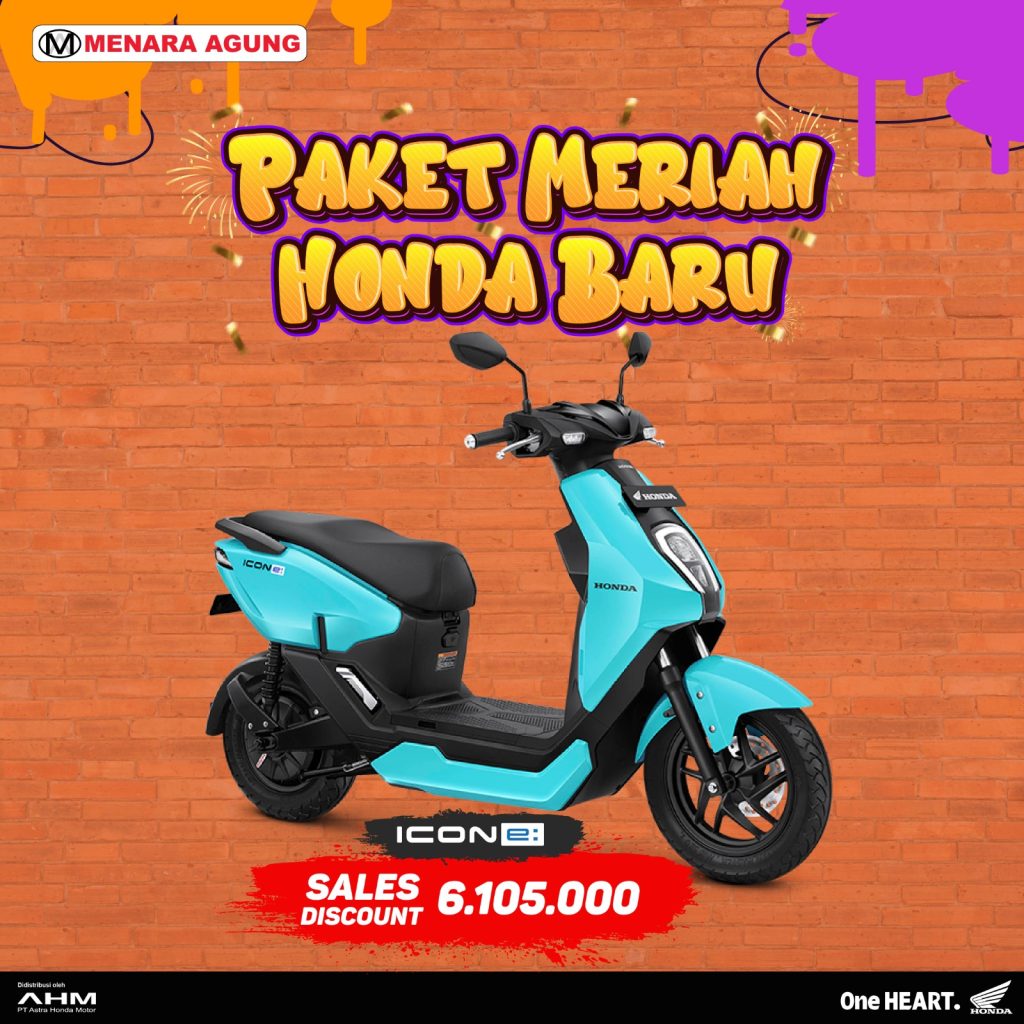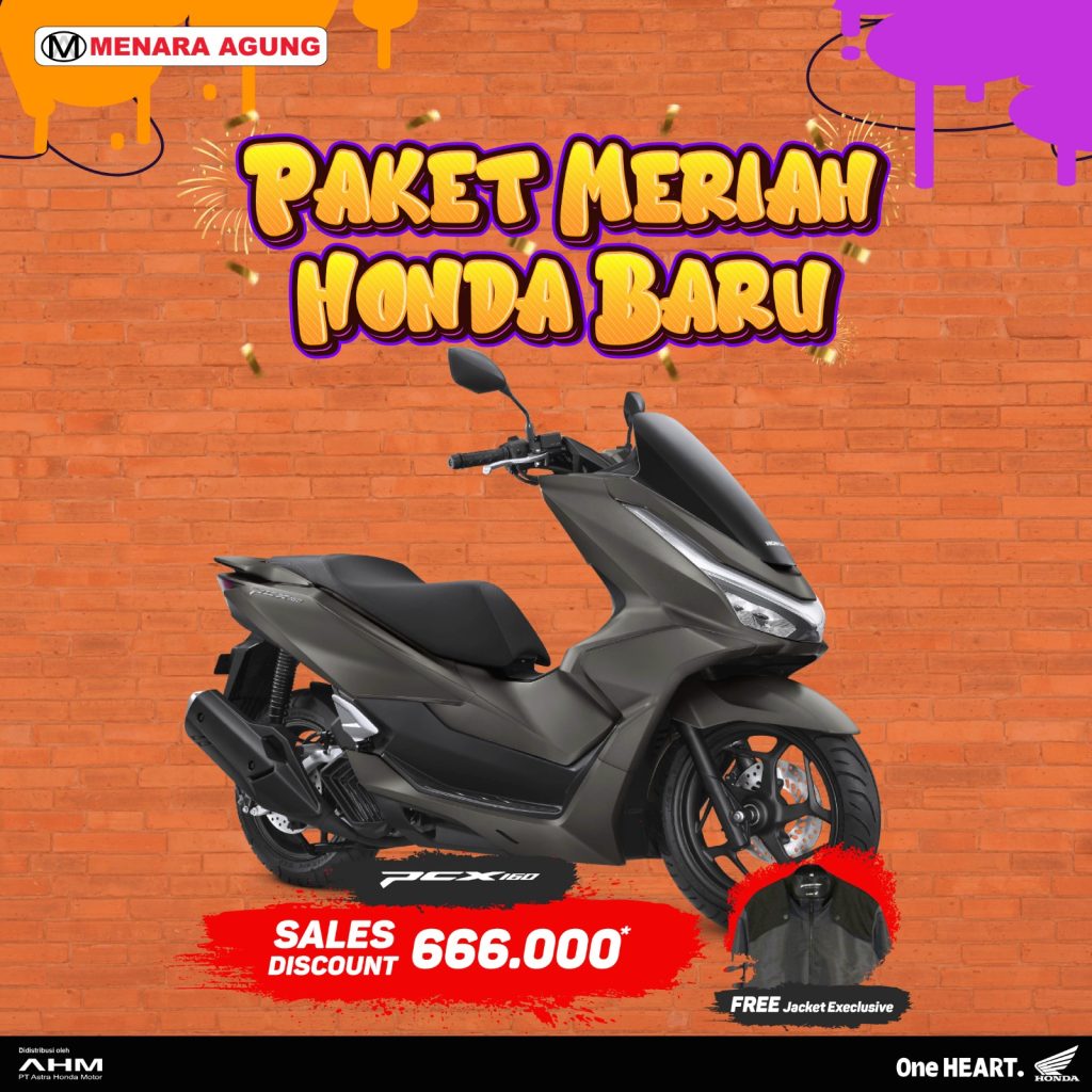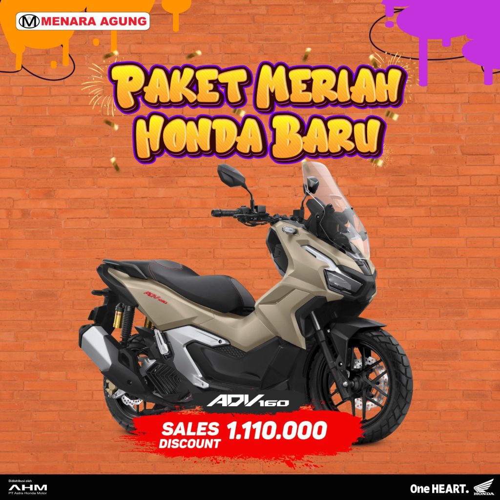 SALES PROGRAM: PAKET MERIAH HONDA BARU Sales Program:Supra GTR 150 SeriesSales Diskon : 666.000 Sales Program:Genio SeriesSales Diskon : 444.000 Sales Program:Vario 160 SeriesSales Diskon : 555.000 Sales Program:PCX 160 SeriesSales Diskon : 666.000Special Gift : Jaket Eksklusif Sales Program:ADV 160 SeriesSales Diskon : 1.110.000 Sales Program:CB 150XSales Diskon: 2.220.000 Sales Program:CBR 250RRSales Diskon : 3.330.000 Sales Program:EM1 e: Sales Diskon : 22.533.000Special Gift : 1 unit Honda Power Pack Charger e: Sales Program:ICON e:Sales Diskon : 6.105.000 Sales Program:CUV e:Sales Diskon : 24.087.000Special Gift : 2 unit Honda Power Pack Charger e: