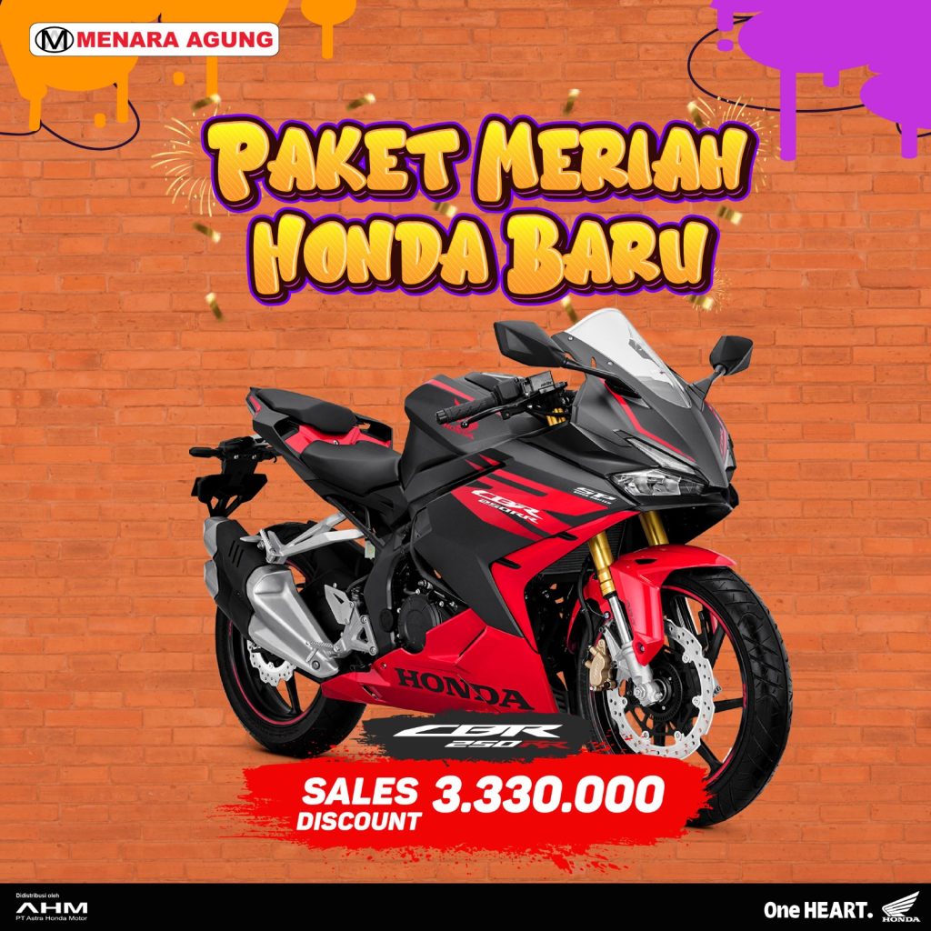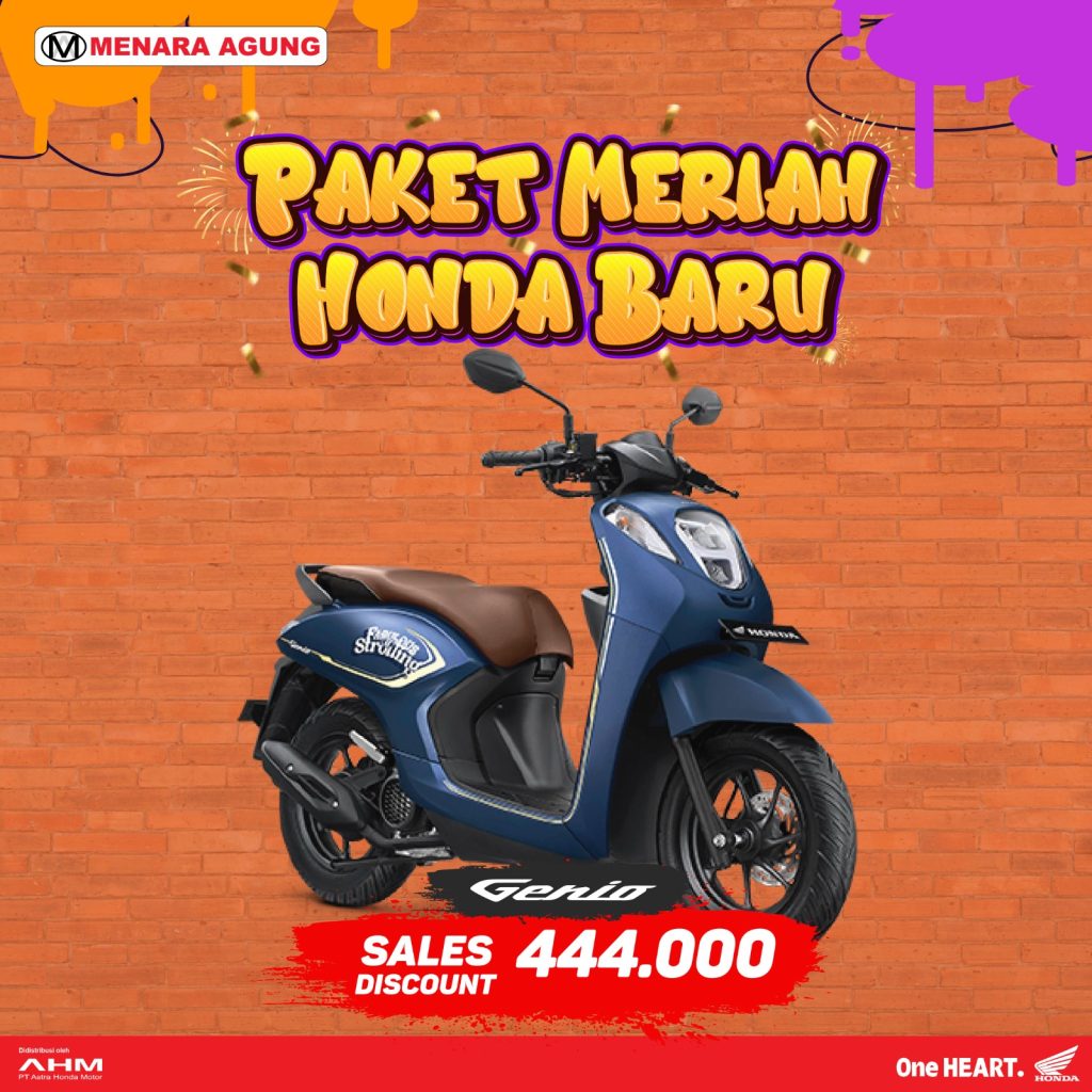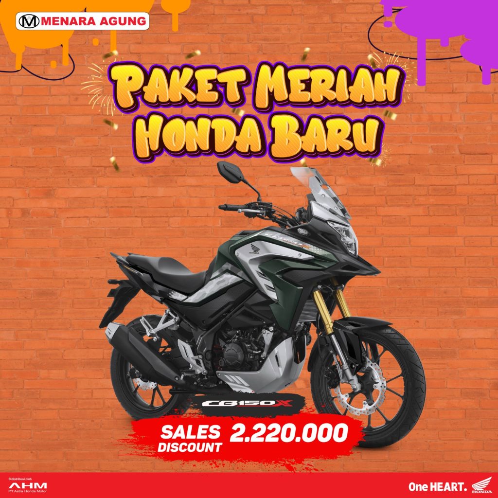 SALES PROGRAM: PAKET MERIAH HONDA BARU Sales Program:Supra GTR 150 SeriesSales Diskon : 666.000 Sales Program:Genio SeriesSales Diskon : 444.000 Sales Program:Vario 160 SeriesSales Diskon : 555.000 Sales Program:PCX 160 SeriesSales Diskon : 666.000Special Gift : Jaket Eksklusif Sales Program:ADV 160 SeriesSales Diskon : 1.110.000 Sales Program:CB 150XSales Diskon: 2.220.000 Sales Program:CBR 250RRSales Diskon : 3.330.000 Sales Program:EM1 e: Sales Diskon : 22.533.000Special Gift : 1 unit Honda Power Pack Charger e: Sales Program:ICON e:Sales Diskon : 6.105.000 Sales Program:CUV e:Sales Diskon : 24.087.000Special Gift : 2 unit Honda Power Pack Charger e: